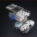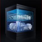 Máy rửa bát Mijia P1 có thể rửa 1 lúc 16 bộ bát đĩa 3 tầng dung tích lớn, bố trí theo khu vực riêng.
